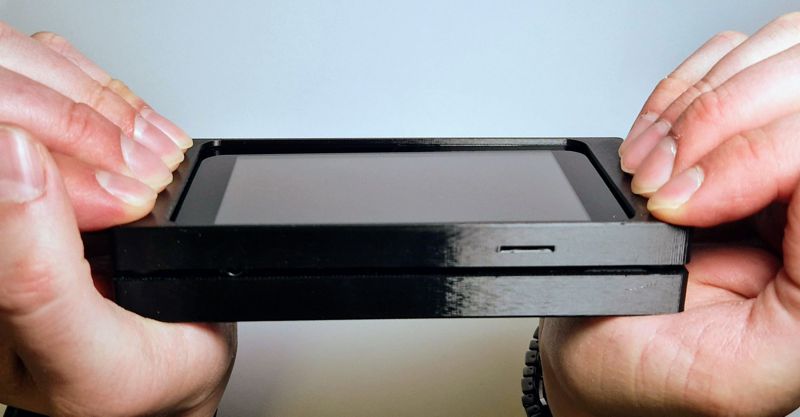 Specter-DIY Snap Case is a print it yourself enclosure with the waveshare scanner on the backside. It consists of a scanner part, in which the scanner is held and the cables are fixed, and a frontside and a backside part, which can be plugged together.